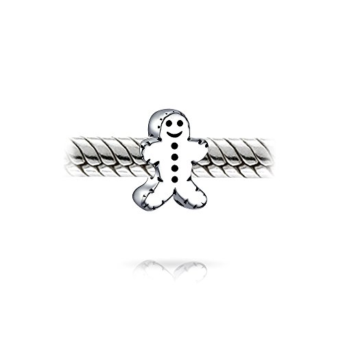 Bling Jewelry Holiday Christmas Fun Uomo Di Pan Di Zenzero Forma Biscotto Charm Bead Per Le Donne Per Adolescenti Ossidato .925 Argento Sterling Per Braccialetto Europeo
