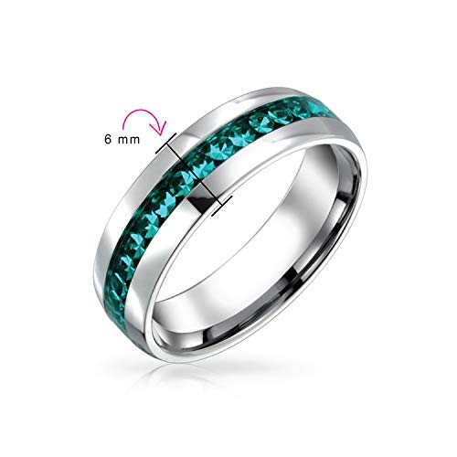 Bling Jewelry Marzo Mese Di Nascita Aqua Color Channel Set Crystal Eternity Band Ring Per Le Donne Per Gli Uomini Argento Tonalità Acciaio Inox