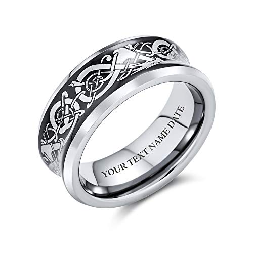 Bling Jewelry Personalizzare Tono Argento Coppie Concavo Nodo Celtico Drago Vichingo Fedi Nuziali Per Gli Uomini Donne Titanio Comfort Fit 8Mm Personalizzabile