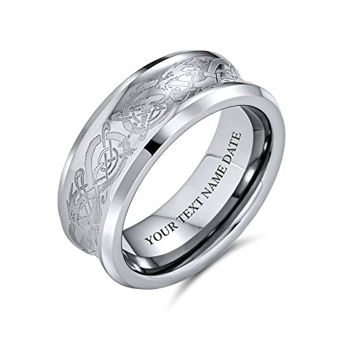 Bling Jewelry Personalizzare Tono Argento Coppie Concavo Nodo Celtico Drago Vichingo Fedi Nuziali Per Gli Uomini Donne Titanio Comfort Fit 8Mm Personalizzato Inciso