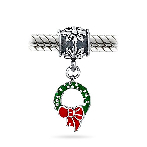 Bling Jewelry Verde Natale Holiday Red Bow Green Wreath Charm Bead Penzolante Per Le Donne Teen Smalto .925 Argento Sterlina Adatto A Bracciale Europeo