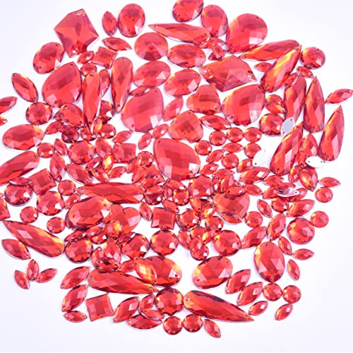 BLINGINBOX - Confezione da 300 diamanti sintetici di forme e dimensioni varie, cristalli in acrilico per cucire, strass, colore rosso Siam