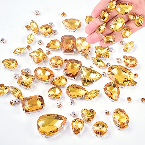 Blinginbox, set di 50 strass da cucire a forma di artiglio in oro con strass in vetro a forma di artiglio (fondo topazio-argento)