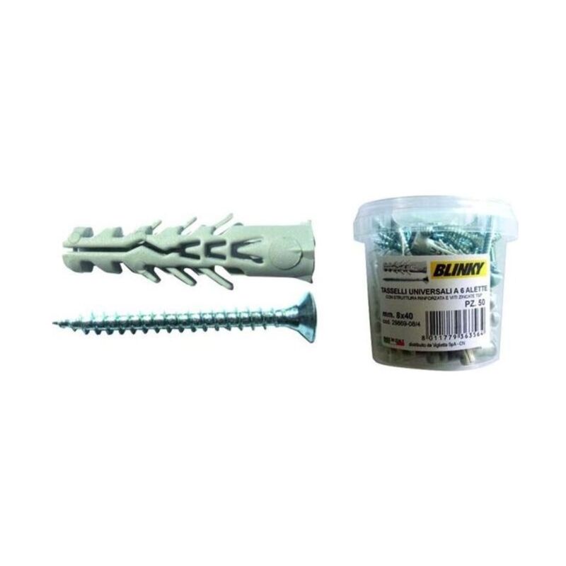 Codice: 8011779363540 Marca: VIGOR-BLINKY. Tasselli Blinky 6- Alette in nylon con 6 alette per materiali pieni e forati con vite tsp p/truciolare