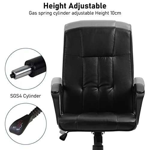 Blisswood Sedia da ufficio direzionale, ergonomica, con schienale regolabile, braccioli imbottiti, sedia da gaming girevole a 360°, sedia da lavoro in pelle PU (sedia da ufficio, nero)