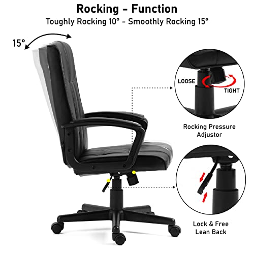 Materiale: la sedia da ufficio è realizzata in pelle PU robusta e durevole, spessa e solida, facile da pulire e mantenere. Base resistente e ruote in nylon liscio per una grande stabilità e mobilità.