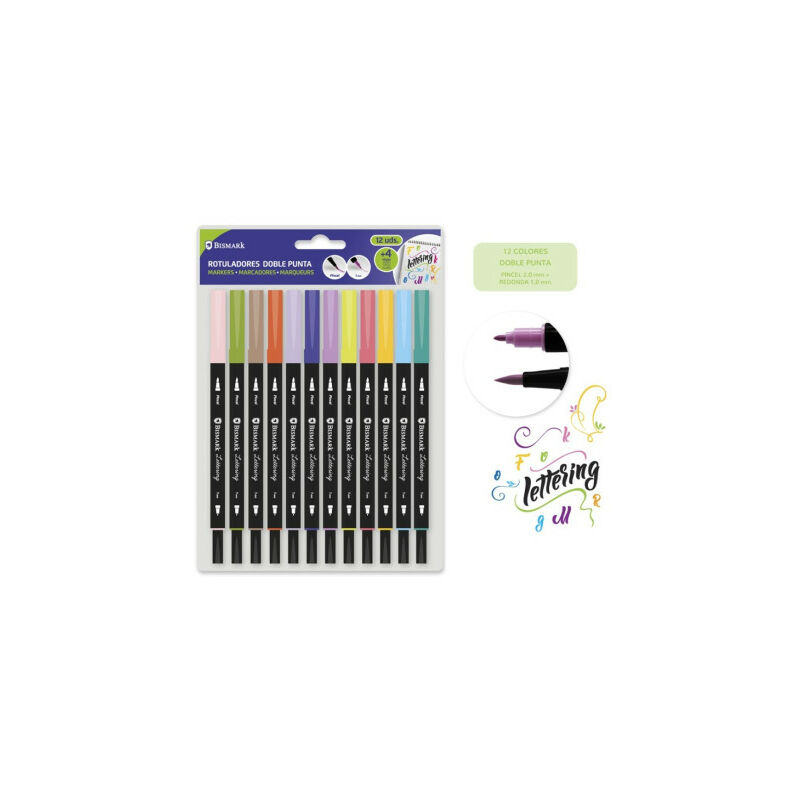 Confezione blister da 12 pennarelli a doppia punta bismark 330114.
