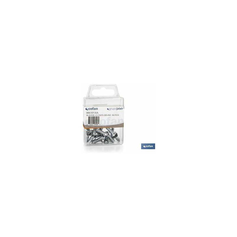 Viti a testa svasata DIN 963 confezionate in blister. Caratteristiche tecniche: Misura: 3,0 x 10 Unità/Scatola: 40