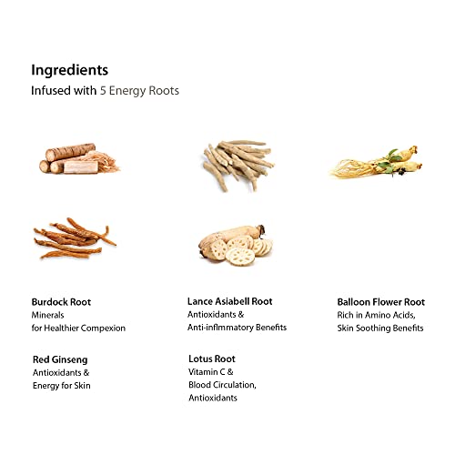 INGREDIENTI NATURALI: Contiene il 46% di estratti di 5 Radici di Ginseng Rosso, Lancia Asiabell, Bardana, Fiore Palloncino e Loto ricchi di antiossidanti e minerali che possono aiutare a ringiovanire e rafforzare la pelle