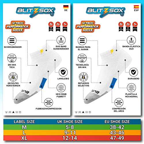 BLITZSOX Calzini da Tennis Unisex con Cuscino Hi-Tech Performance Max, Assorbimento dell'umidità, Calzini da Tennis Bianchi (Lunghezza alla Caviglia) per Uomo e Donna, Confezione da 3 (EU 38-42)