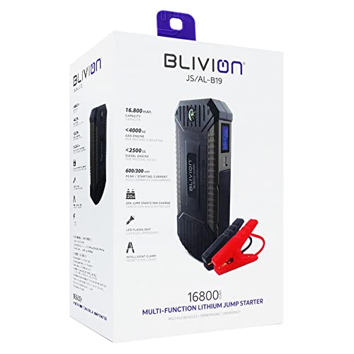 BLIVION Avviatore Emergenza per Auto 16800mAh Avviatore Batteria Auto (per Veicoli a Benzina e Diesel) 12V. 4 Porte USB. Torcia d'emergenza e Bussola Inclusa.