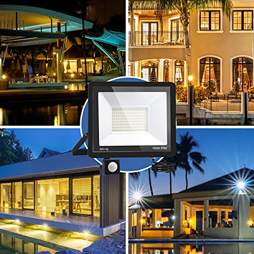 Blivrig 2PSC faretto led da esterno con sensore di movimento 100W,IP66 Impermeabile faretto led da esterno 10000LM Bianco Caldo(3000K) Faro a LED da fredda per Cortile, Giardino,Garage