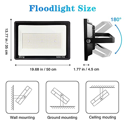 Blivrig faretto led da esterno 500W 50000LM Faro LED Esterno,faretti led Impermeabile IP66 6000K Luce Bianca Fredda per giardino, cortile, garage, magazzino [classe energetica A++]