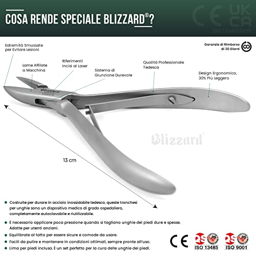 Blizzard Tagliaunghie Professionale - Tronchese per Unghie dei Piedi per Pazienti Diabetici - Taglio Retto - CE strumento chirurgico per Podologi - Fabbricato in acciaio inossidabile Tedesco 13 cm