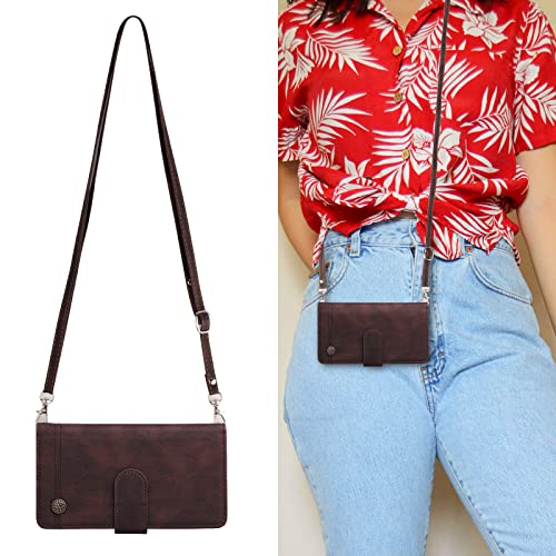 Blllue Custodia a portafoglio compatibile con Samsung A32 5G, tasca per contanti in pelle, 9 scomparti per carte di credito con cordino a tracolla per Galaxy A32 5G (marrone)