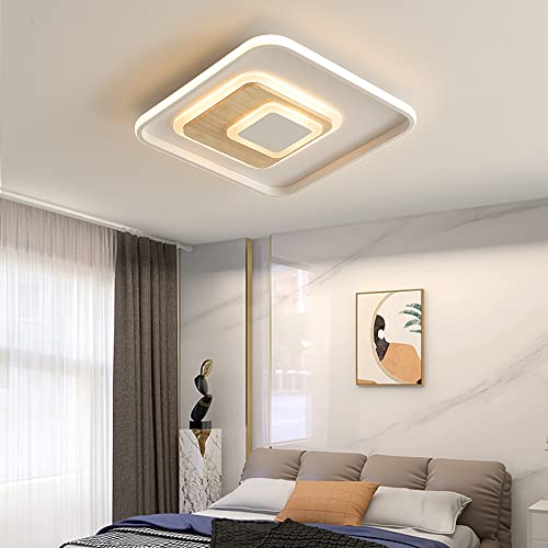 BLMYL Plafoniera a LED, Moderna Lampada da soffitto Quadrata in Legno, dimmerabile da 3000K a 6000K, plafoniera LED soffitto per Camera da Letto, cameretta, Soggiorno e Cucina