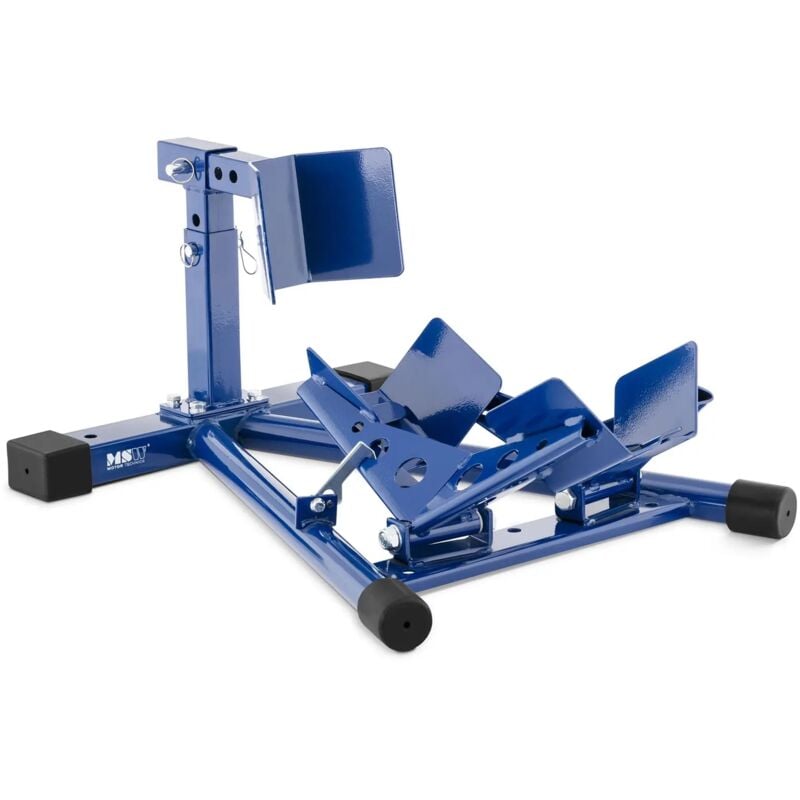 Bloccaruota per moto MSW-MS-12 di MSW Questo fermaruota per moto, semplice da usare ed efficace, è l'aggiunta perfetta agli accessori della tua officina. La sua ampia superficie di appoggio permette di usarlo da solo o montato in modo permanente. Comunque tu voglia usarlo, la sua robusta costruzione in acciaio regge saldamente moto fino a 200 kg. La costruzione a serraggio del fermaruota per moto blocca lo pneumatico anteriore quando la moto viene inserita, fissandola in maniera stabile. Il serraggio può essere regolato in modo ottimale ed è progettato per pneumatici con una dimensione di 16-21, in modo da poter essere usato con la maggior parte delle moto. Usa il bloccaruota per fissare la tua moto durante i lavori di manutenzione o per conservarla in modo sicuro durante l'inverno. Anche per il trasporto su rimorchio, questo fermaruota per moto fornisce un supporto sufficiente per poi fissare il tuo veicolo con le cinghie. Dettagli tecnici Materiale Acciaio al carbonio Colore Nero