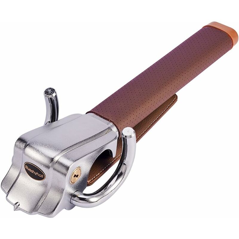 Caratteristiche: Prodotto di alta qualità. Grembiule airbag regolabile, più adatto all'uso. (Adatto con chiave a brugola) Se il lucchetto viene tagliato dal ladro, il grembiule dell'airbag può quindi premere il clacson per emetterlo. La forcella di bloccaggio può ruotare di 360 gradi, adatta per la maggior parte dei volanti con copertura spessa. La maniglia della serratura è ricoperta da PU di alta qualità con cuciture fatte a mano, aspetto di alta qualità e durevole in estate. Le superfici di contatto sono imbottite per proteggere il volante da eventuali danni. Può essere ripiegato e posizionato sotto il sedile del conducente quando non è in uso. Specifiche: Materiali: pelle PU premium e acciaio. Utilizzo universale per veicoli. Contenuto: 1 bloccasterzo con martello di sicurezza.
