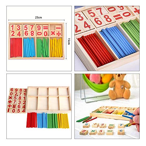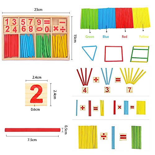 ☞Includes 5 math signs and 19 numbers 0 to 9 and 46 counting rods.Let kids recognize numbers and understand the relationship between number and quantity.