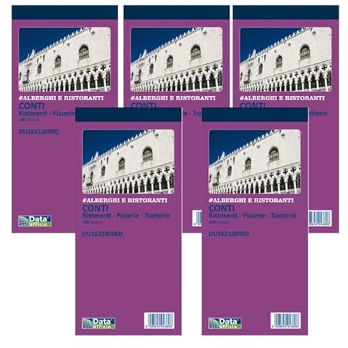 5 Blocchi Conti 50x2, 50 FG Moduli Auto ricalcanti in duplice Copia, per alberghi, Ristorante, Bar, Pub, pizzerie, blocchetti autocopianti