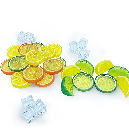 Il mix di limone finto contiene: 15 pezzi di fetta di limone finto (contiene 3 colori) + 6 pezzi di blocco di limone simulato (contiene 2 colori) + 8 pezzi di cubetti di ghiaccio finti trasparenti