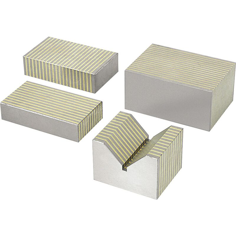 Raccordo in ottone-acciaio. * Rastremazione longitudinale e trasversale dei poli. Piana o a prisma. * Lamelle in ottone da 1 mm / in acciaio da 3 mm, incollate senza tirante. * Blocchi lamelle non magnetici. * Tolleranza altezza ± 0,5 mm. Uso: * Utilizzabili per la lavorazione di pezzi irregolari solo insieme alle piattaforme magnetiche. * Nei blocchi è possibile inserire qualsiasi tipo di profilatura. Dati tecnici Tipo di prodotto Blocco a lamelle Lunghezza, mm 100 Larghezza, mm 70 Altezza, mm 48 Peso, kg 2,7 Direzione poli longitudinale Esecuzione piana