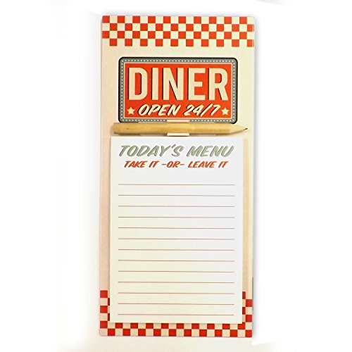 Blocco note magnetico per frigorifero con matita, bianco con scritta “Diner”