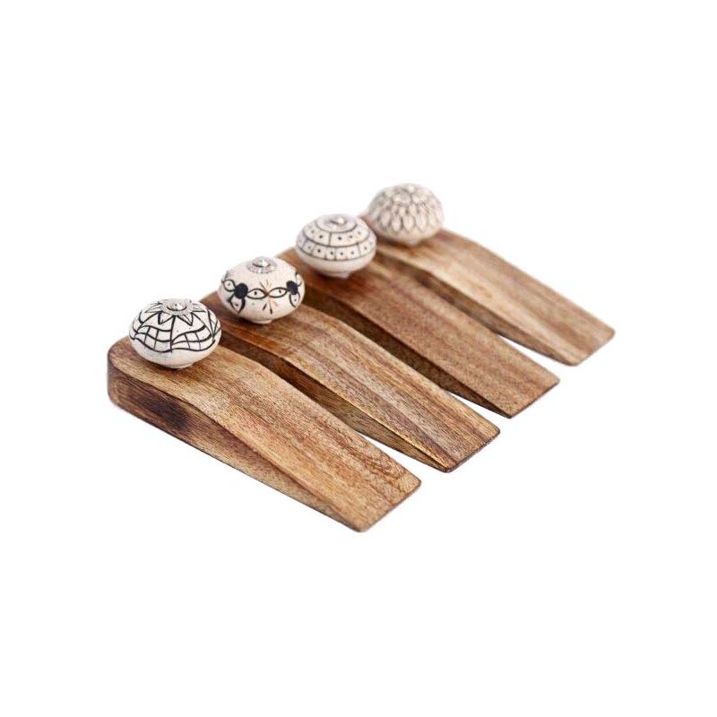 Aspect: Matériau principal: Bois de manguier (70%) Matériaux secondaires: Céramique (25%) Fer (5%) Dimensions: Hauteur (en cm): 5 Longueur (en cm): 15,30 Profondeur (en cm): 3,50 Autres caractéristiques: Composition: Lot de 4 blocs porte assortis - modèles aléatoires Poids (en kg): 0,50 Bloc porte en bois de manguier avec bouton en céramique Fleur (Lot de 4)