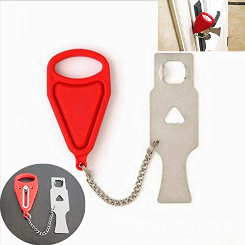 [Facile da usare] Serratura portatile senza attrezzi. Metti la parte della medaglia va nel foro sull'inceppamento della porta, quindi chiudi la porta, prendi la maniglia rossa e inseriscila nella serratura in posizione, può essere installata e rimossa in pochi secondi.
