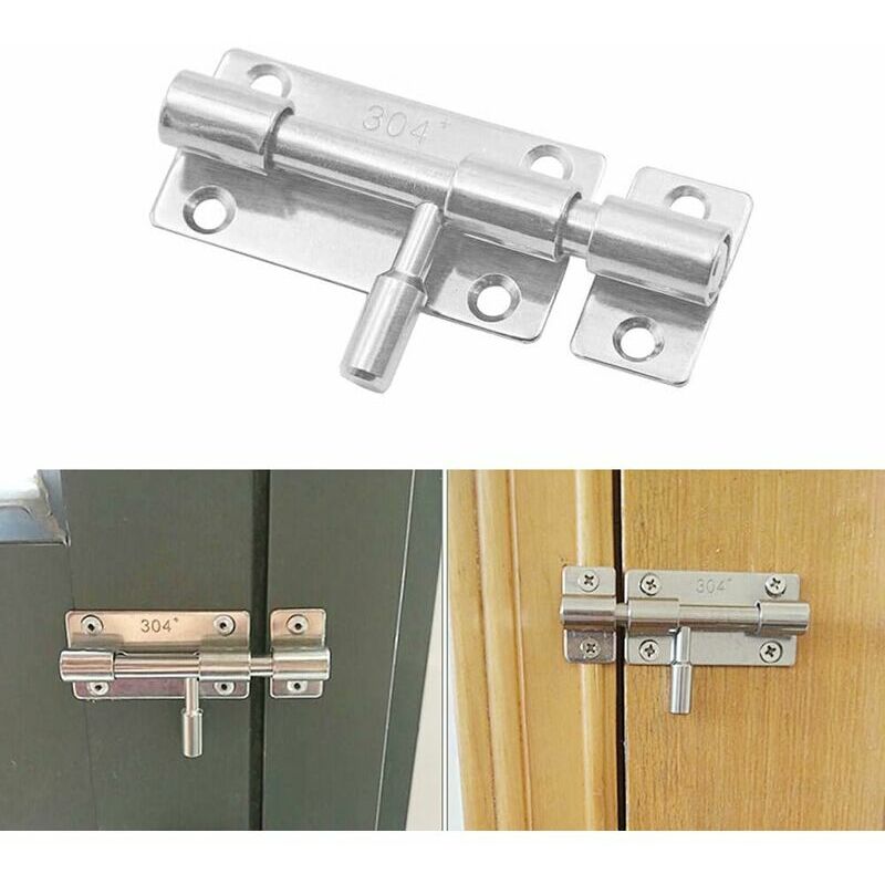 Queste serrature scorrevoli sono adatte a tutti i tipi di porte, ad es. Come bagni, armadi, camere da letto e porte per casette da giardino, ecc. Facile da installare e utilizzare. Materiale robusto e robusto Realizzato in acciaio inossidabile 304 di alta qualità, resistente, robusto e liscio lucido, quindi ha un bell'aspetto. Dimensioni della vite della porta: la lunghezza del corpo della vite principale è di 60 mm, la larghezza è di 3 mm;