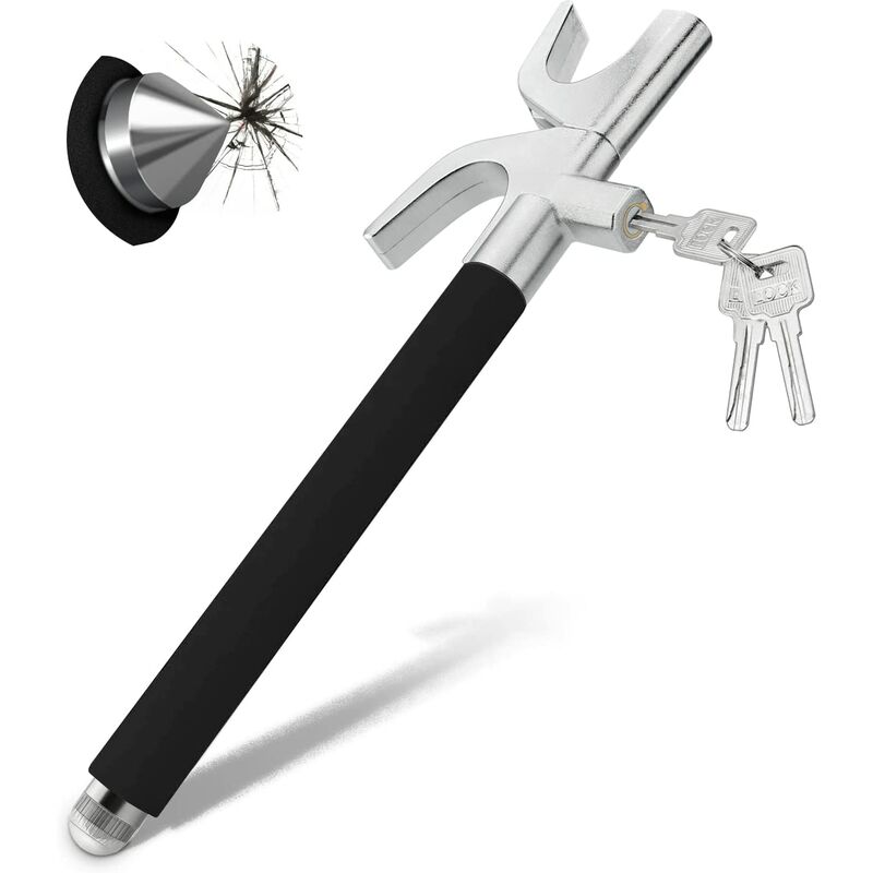 SPECIFICHE SERRATURA ANTIFURTO: - Dimensioni del prodotto: 17,1 x 3,35 x 0,98 pollici, la barra antifurto è regolabile - Lunghezza regolabile 6,7 "-10,4". Adatto per un diametro interno del volante compreso tra 6,7 "-10,4". Realizzato in acciaio tondo di alta qualità e alluminio/lega di alta qualità per resistere ad attacchi indiscreti, segatura, martellamento e freon. La maniglia del blocco del volante dell'auto è ricoperta da una robusta schiuma che non graffia il volante. 【BLOCCO AGGIORNATO:】 Il bloccasterzo non è solo un blocco. Allo stesso tempo, è uno strumento di fuga sicuro per le auto in metallo. Rompifinestra a martello di emergenza, il cono affilato (con un cappuccio protettivo) all'estremità della serratura può essere utilizzato per scappare in caso di emergenza, proteggere la tua sicurezza. 【BLOCCO A FORMA DI U DEL VOLANTE DI SICUREZZA:】 Questo bloccasterzo per auto ha una precisa chiave codificata a doppia molla a mezzaluna progettata per impedire ai ladri