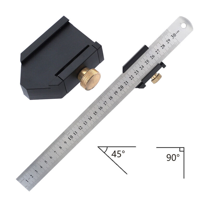 1. Blocco di posizionamento Righello parallelo per la lavorazione del legno: scala, calibro con righello in acciaio inossidabile, tappo in lega di alluminio di alta qualità. Risparmio di tempo misurabile con un comodo trasferimento delle dimensioni. Un vero piacere nella massima precisione. 2. Per 45 gradi e 90 gradi, 300 mm: puoi facilmente trasferire le dimensioni con il pennarello. Questo angolo di arresto regolabile è stato sviluppato appositamente per angoli di 45 gradi e 90 gradi. 3. Risparmia tempo prezioso e rendi l'artigianato più piacevole con il calibro per la marcatura del legno: con l'arresto del righello puoi eseguire 3 passaggi in un solo passaggio e andare avanti rapidamente, quindi anche la marcatura è pura gioia! 4. Ampia applicazione: Il righello in acciaio è adatto sia per la misurazione della lunghezza che per la larghezza, la marcatura con un tracciatore e come misuratore di profondità, altimetro, ecc. Sia per il miglioramento domestico che per uso