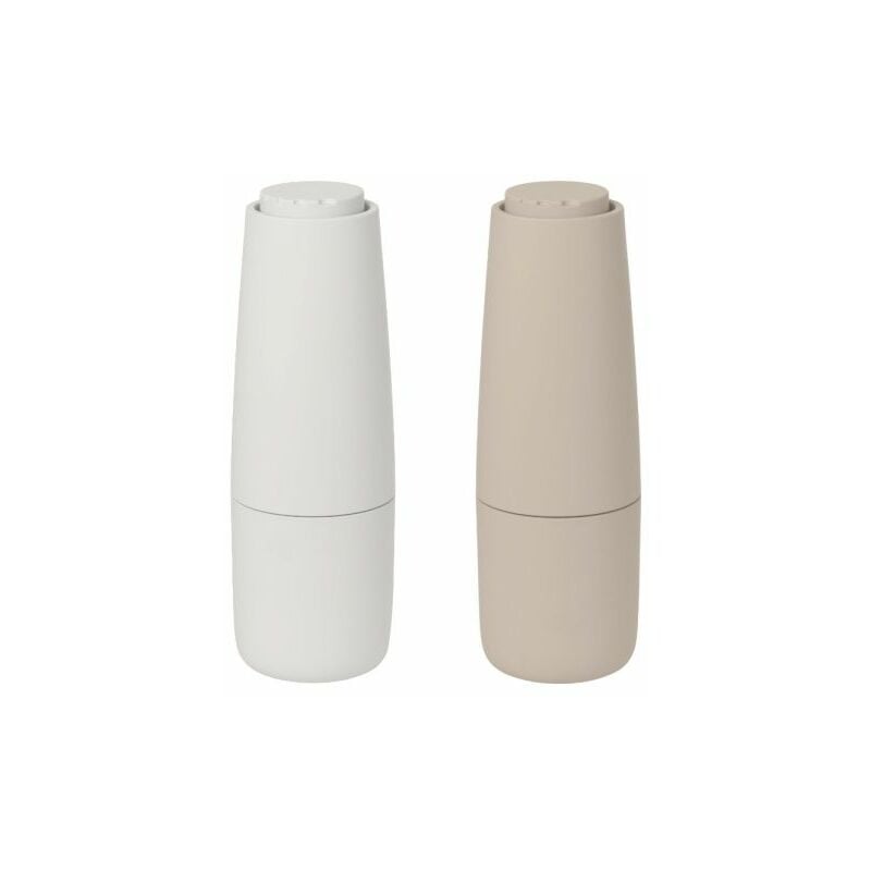 Macina sale e pepe di Blomus, modello Salpi. Salpi è un set composto da un macina sale e un macina pepe. Funzionali ma al tempo stesso dal design accattivante, perfetti per essere posizionati in bella vista sul tavolo o sul piano della cucina. I contenitori possono essere aperti e riempiti tramite il semplice meccanismo di aggancio. La granulometria può essere regolata da grossolana a molto fine. Ogni macinino ha un diametro di 7 cm e un altezza di 20 cm. Il macina sale e pepe Salpi è disponibile in quattro versioni: In acciaio inossidabile opaco, con ruote di regolazione in due diverse tonalità di beige (Nomad e Moonbeam);