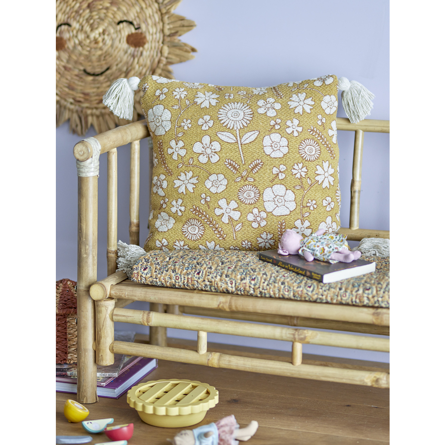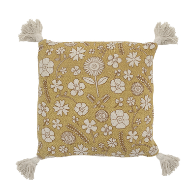 Dettagli del prodotto: Il cuscino è realizzato in cotone riciclato In un bellissimo motivo floreale print Ha bellissime nappe in ogni angolo Materiale e cura: Materiale: 50% cotone (realizzato con materiali riciclati), 39% poliestere, 11% viscosa. Materiale di riempimento: 100% poliestere Lavabile a 40 °C Non candeggiare Non lavare a secco Dimensioni e peso: Dimensioni: 40 x 40 cm Incluso nella consegna: Cuscino Camille Attenzione: la decorazione non è inclusa