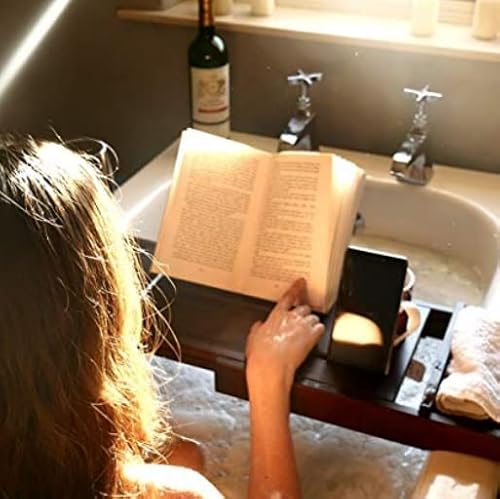 Blooming Lily Vassoio per Vasca da Bagno Multifunzionale Mensola Portaoggetti con Supporto per iPad, Libro, Scomparto per Bicchiere (Marrone - Supporto per libri in legno)