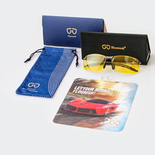 Bloomoak Guida Notturna Occhiali/Lenti Gialli Occhiali da guida per la notte - Ultraleggero occhiali da guida | Anti-riflesso | Protezione UV - Occhiali da guida notturna per uomo e donna