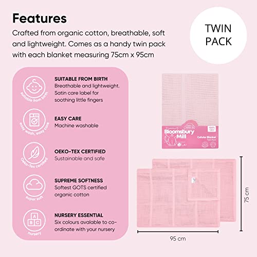 Bloomsbury Mill - Confezione da due - 100% puro cotone biologico - Copertine bambino a nido d'ape extra morbide - Carrozzina/viaggio/culla portatile - Rosa