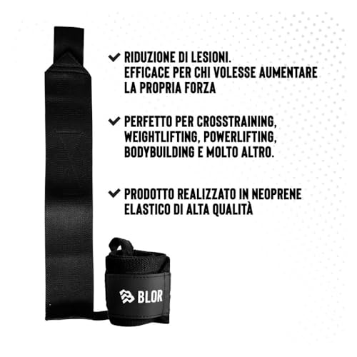 BLOR Polsiere da Palestra Elastiche Supporto per Polsi Ideale per Bodybuilding Crosstraining Calisthenics Lunghezza Extra Anti Strappo Cuciture Rafforzate