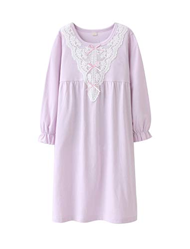 BLOSSOMLIFE - Camicia da notte per bambina, 100% cotone, tinta unita, colore: rosa, viola, bianco, 3-14 anni viola 7-8 Anni