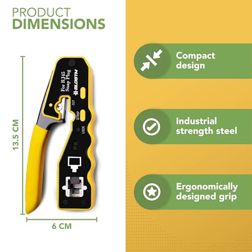 Risparmia tempo ed energia: posiziona i connettori per tagliare conduttori extra in meno tempo che mai. Questo set di strumenti a crimpare facile da usare è ideale per cavi ethernet, cavi da giardino e cavi di rete.