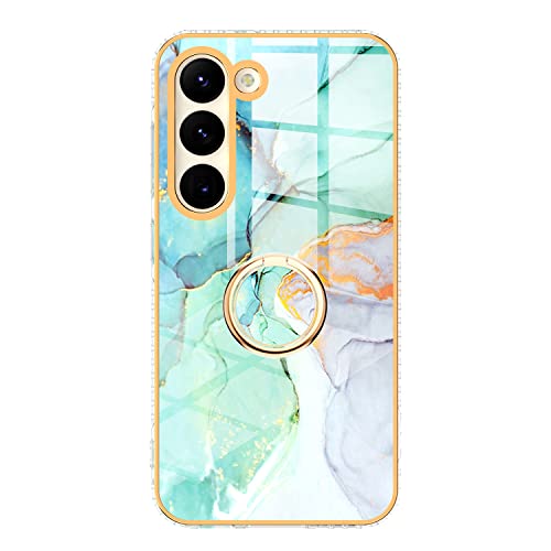 BLOTECH Marble Glossy Surface Back Case for Samsung Galaxy S23 Case with Ring Flexible TPU Electroplate Green Marble Back Cover Rubber Gel Case Ultra Slim Bumper Ring Cover for Samsung Galaxy S23