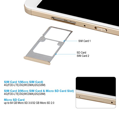 Bluboo Maya Max 6.0" HD Android 6.0 Doppia SIM 4G Smartphone 1280 * 720 Pixel 3GB RAM + 32GB 4200mAh GPS A-GPS WIFI FM OTG CAT6 Posteriore-impronte Digitali Ricarica Rapida Type-C Oro