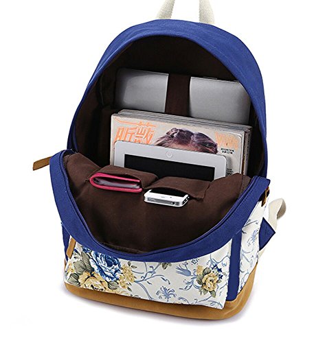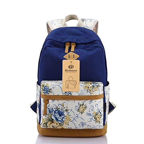 BLUBOON Tela Zaino Casual Scuola Zaini Donna Ragazza Canvas Backpack Zainetto 3 in 1 (Blu Scuro)