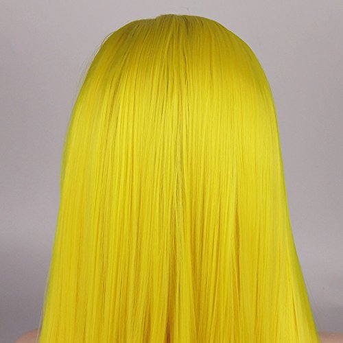 Blue Bird - mezza parrucca sintetica con fronte in pizzo, colore giallo, lunga, liscia, per cosplay, da donna