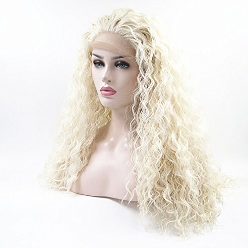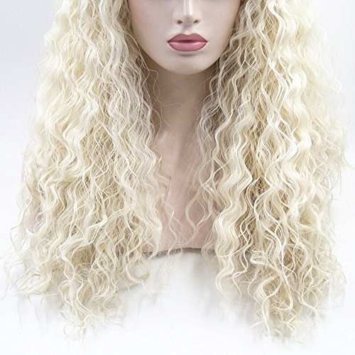 Blue Bird - Parrucca sintetica con capelli lunghi e ricci crespi, biondo platino chiaro, con attaccatura frontale senza riga e movimento di ondulazione voluminosa, per donne bianche, uso quotidiano