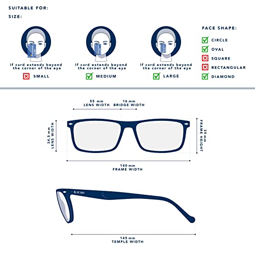 BLUE BAY CLEMMYS, Occhiali da Lettura +1.5 per Uomo, Occhiali Vista con Protezione Anti Luce Blu, Materiale Riciclato, Leggeri e Flessibili, Montatura Blu Opaco