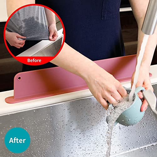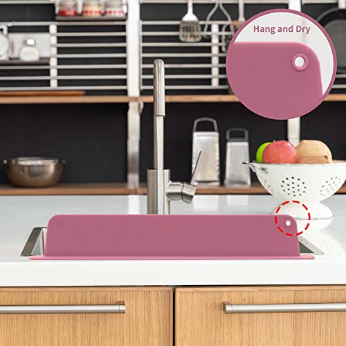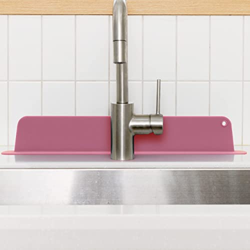 Blue Gingko - Paraspruzzi per lavandino (Design aggiornato) in Silicone di Alta qualità per lavello, paraspruzzi per lavandino e lavandino Dietro Il Rubinetto (47,8 x 7,4 cm) Rosa