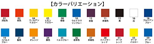 Colori disponibili: 01 cremisi ¦ 02 zinnoberrot ¦ 04 giallo oro ¦ 05 giallo limone ¦ 08 Teal ¦ 10 blu oltremare ¦ 12 rotviolett ¦ 13 marrone ¦ 15 nero ¦ 16 bianco ¦ 18 preussischblau ¦ 19 blu cobalto ¦ 31 indaco ¦ 33 arancione ¦ 34 Mauve ¦ 35 turchese ¦ 36 verde ¦ 37 Sienna bruciata ¦ 38 rosso fuoco