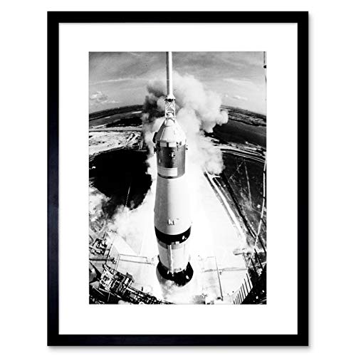 Wee Blue Coo Space Rocket Launch Saturn V Apollo 11 View Thrust Blast Lift Off Framed Wall Art Print Spazio Razzo vista Parete