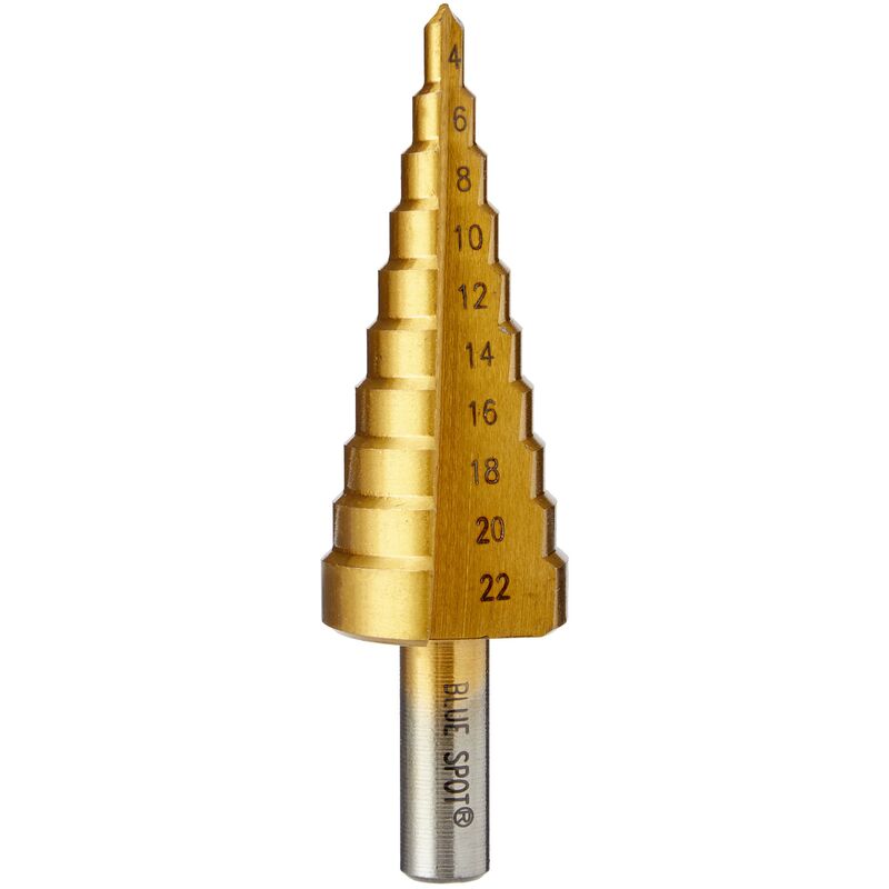 Il bluespot HSS Step drill è appositamente progettato per la precisione di foratura di fori in alluminio, ottone, rame, plastica, acciaio e legno. Realizzato in materiale di alta in acciaio per una maggiore durata e potenza di taglio. titanio rivestito per ridurre l' attrito e calore. 2 mm passo passo.
